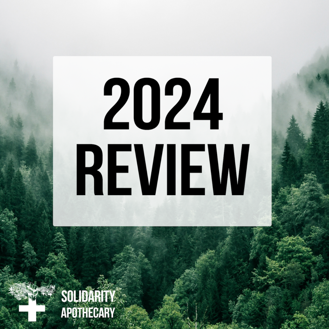 The mission of the Solidarity Apothecary is to materially support revolutionary struggles and communities with plant medicines to strengthen collective autonomy, self-defence and resilience to climate change, capitalism and state violence. Each year, I review the work towards this goal.